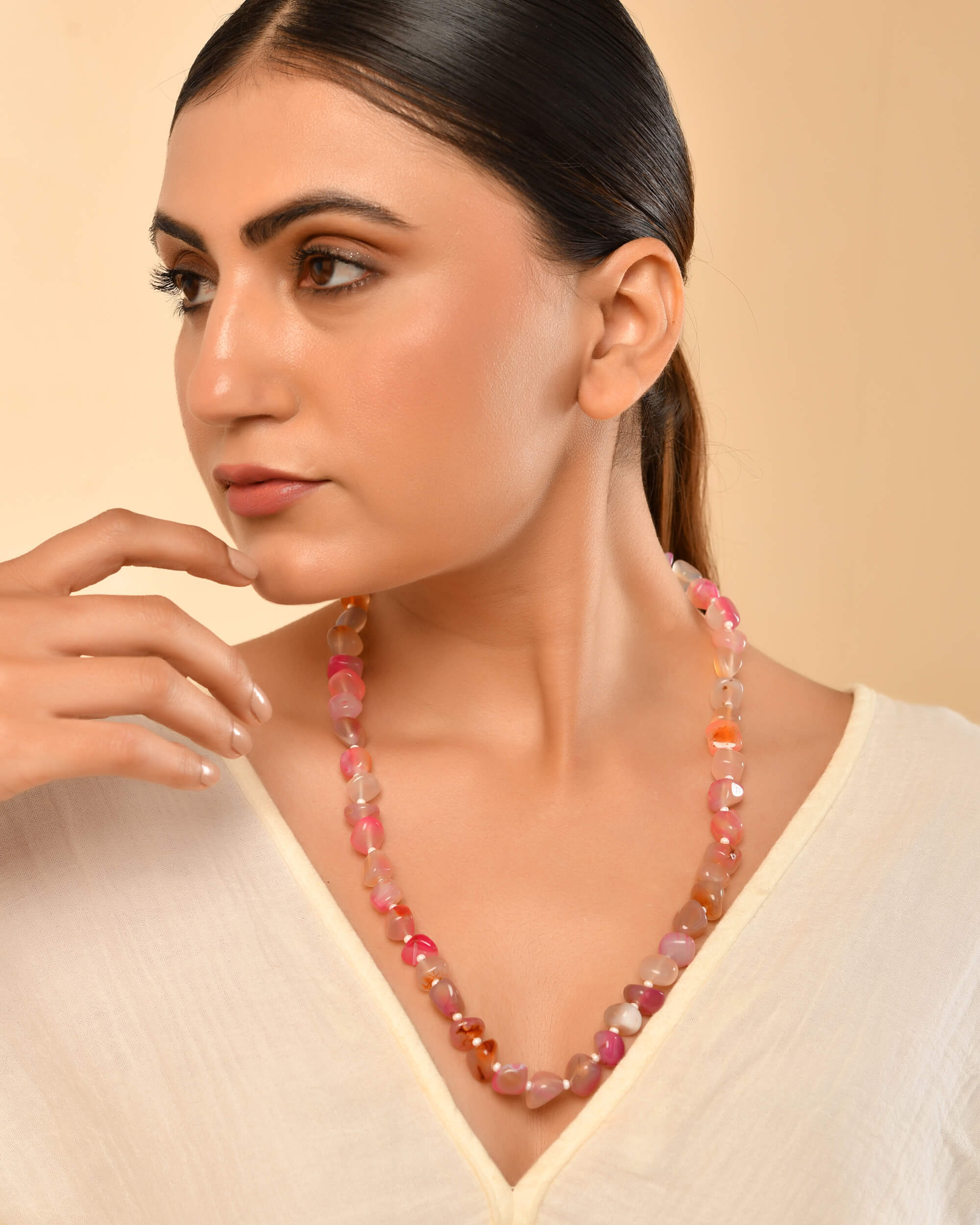 This single string of tumble Shaped Agate stone necklace with drawstring closure is a beautiful trendy piece is for you.